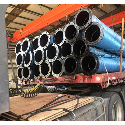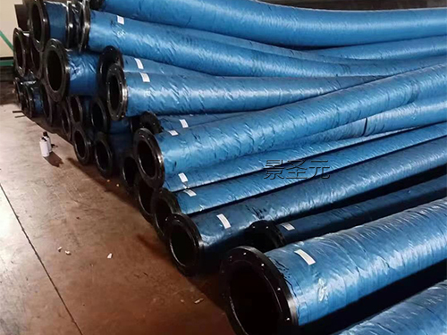 大口径胶管用以输送气体、液体、浆状或粒状物料的一类管状橡胶制品。大口径胶管由内外胶层和骨架层组成,骨架层的材料可用棉纤维、各种合成纤维、碳纤维或石棉、钢丝等。一般胶管的内外胶层材料采用天然橡胶、丁苯橡胶或顺丁橡胶;耐油胶管采用氯丁橡胶、SBR橡胶;耐酸碱,耐高温胶管采用乙丙橡胶、氟橡胶或硅橡胶等。大口径胶管的内胶层直接承受输送介质的磨损、侵蚀,且防止其泄漏;钢丝骨架排吸胶管外胶层保护骨架层不受外界的损伤和侵蚀;骨架层是胶管的承压层,赋予管体强度和刚度。大口径胶管的工作压力取决于骨架层的材料和结构。大口径胶管按其骨架层材料和结构可分为全胶胶管(无织物材料)、夹布胶管(骨架层为布层,)、吸引胶管(布层外还有一层金属螺旋线,)、编织胶管(骨架层为编织的钢丝或织物,)、缠绕胶管(骨架层为钢丝或线绳缠绕层,)、针织胶管(骨架层为针织物,)、短纤维胶管(短纤维与橡胶共混压而成)。其中吸引胶管在负压下工作,钢丝编织胶管或缠绕胶管能承受80~600MPa乃至更高的压力。吸排泥浆大口径胶管适用于水、压缩空气和非腐蚀性液体的输送,广泛应用于工业、建筑业、农业等领域;工作压力:10-15bar,18bar,20bar和25bar;温度范围在:-20℃--45℃环境下使用;内胶:光滑,SBR合成橡胶;外胶:光滑(表面布纹),抗老化、耐臭氧的EPDM合成橡胶。